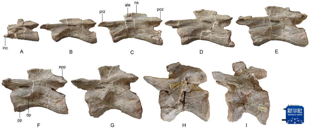 王氏栗樹龍的頸椎序列左側視照片。(中國科學院古脊椎動物與古人類研究所 供圖)