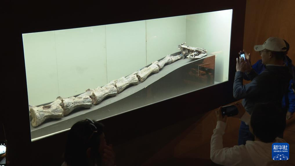 “發掘過程中,該標本后半部分在沖溝中被雨水沖走,只有頭部骨骼和頸椎骨骼保存較為完好,根據現有化石標本推測,該恐龍活著的時候體長應該在8米左右?!钡撠S市自然資源局恐龍化石保護研究中心主任王濤說。