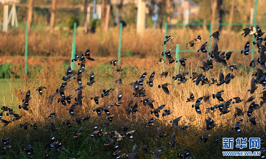 灰椋鳥成群飛過(12月14日攝)。新華網發(孫文來 攝)