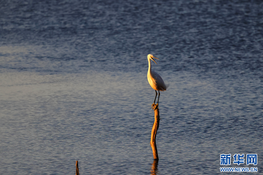 夕陽下,白鷺翩翩起舞(12月14日攝)。新華網發(孫文來 攝)