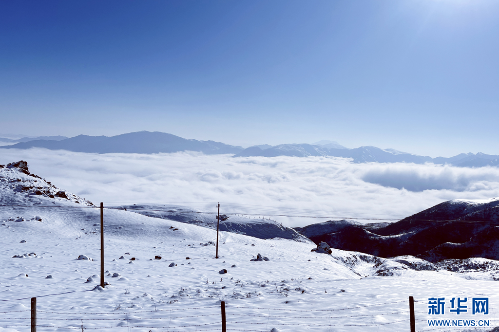 近日,位于云南省昭通市永善縣的云上馬楠景區被潔白無瑕的冰雪所覆蓋,在暖陽的照耀下積雪如畫、霧凇如夢、云海歡騰……構成了一幅動人的畫卷,美得猶如童話世界。(龍喜學 錢盛旺 廖經愿)
