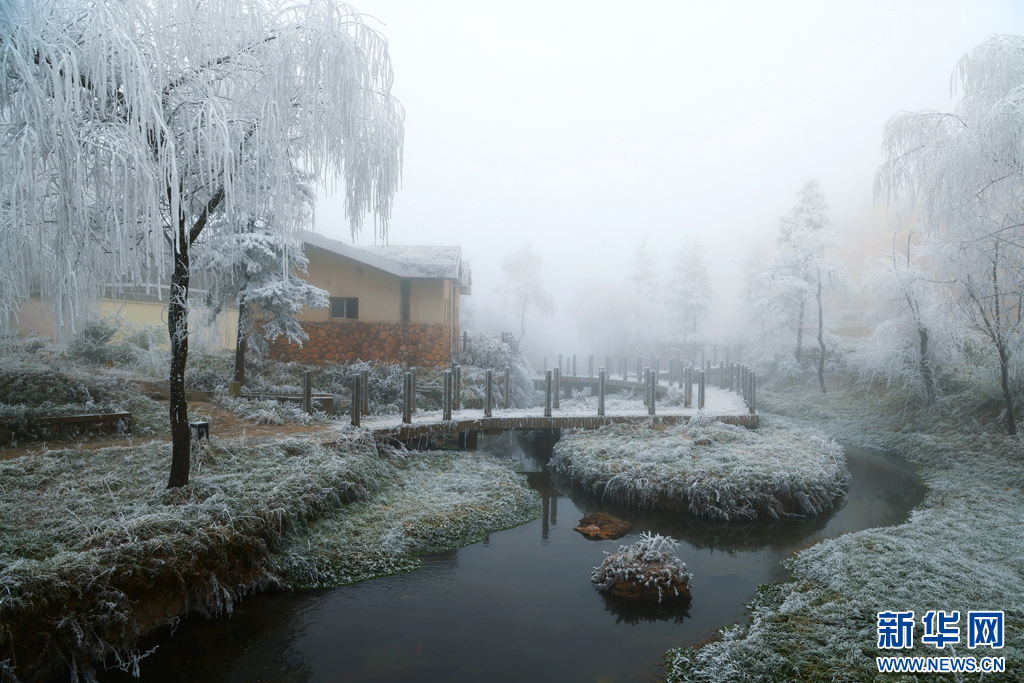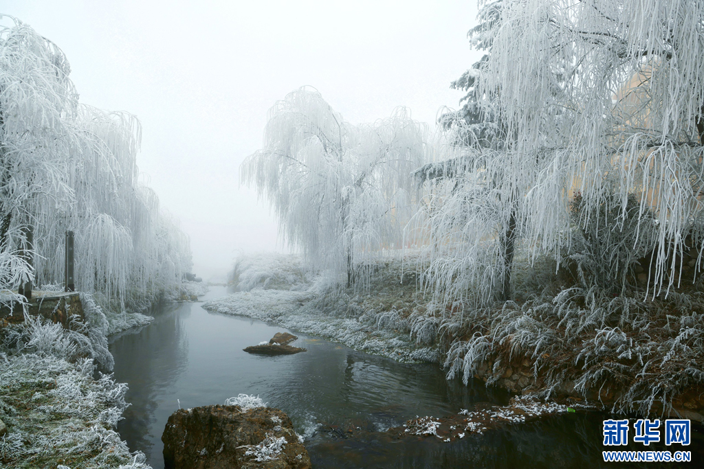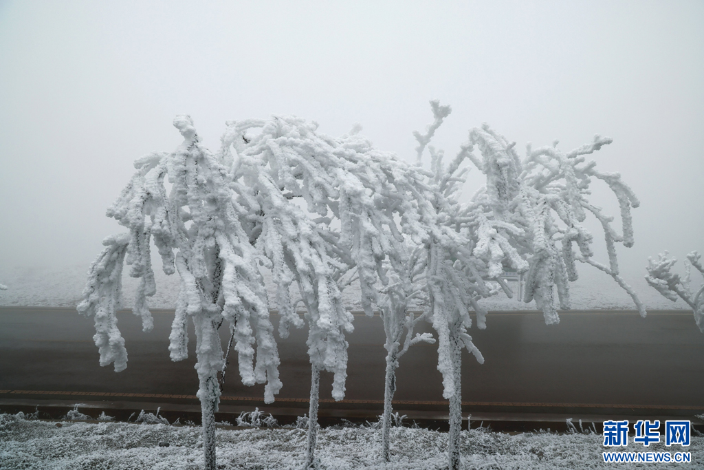 云南大山包黑頸鶴國家級自然保護區道路旁的霧?。?2月15日攝)。新華網發(鄭遠見 攝)
