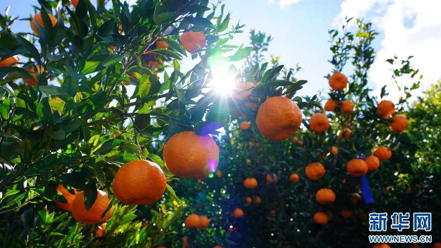 日光下的椪柑(12月22日攝)。新華網發(賓川縣融媒體中心供圖)