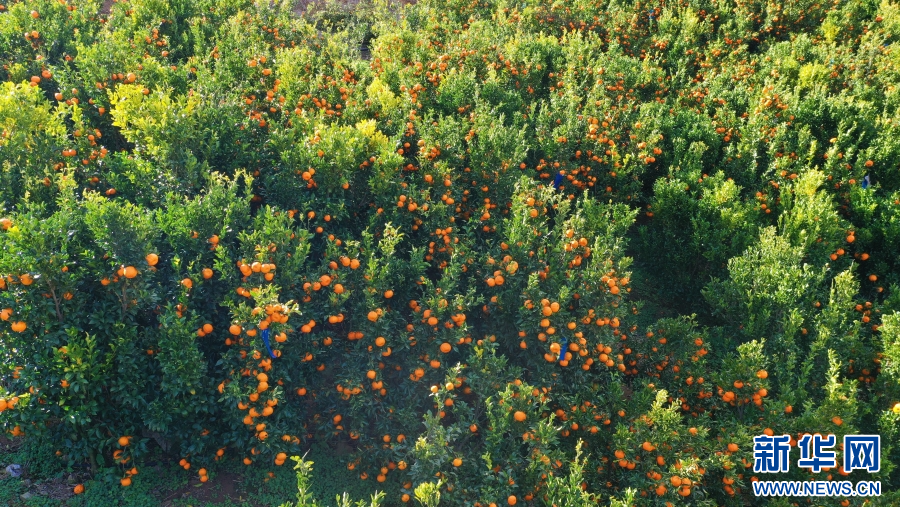 成熟的椪柑(12月22日攝)。新華網發(賓川縣融媒體中心供圖)