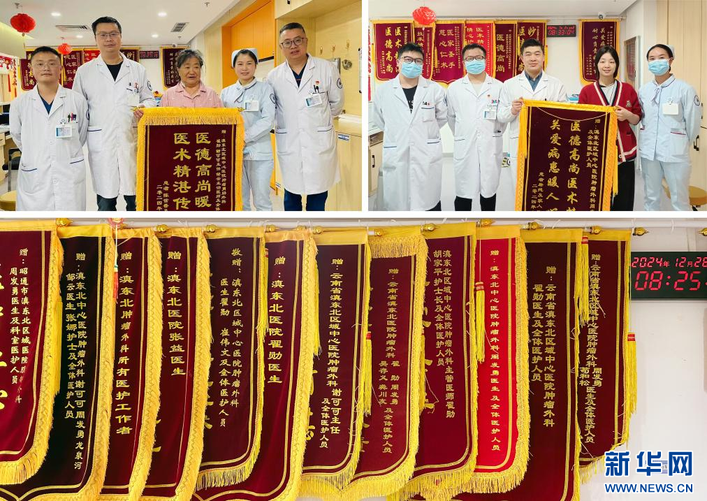 新華網昆明12月29日電(記者 周磊)近日,數名患者先后將錦旗送到位于云南省昭通市的云南省滇東北中心醫院腫瘤外科,表達對醫護人員的感激之情。