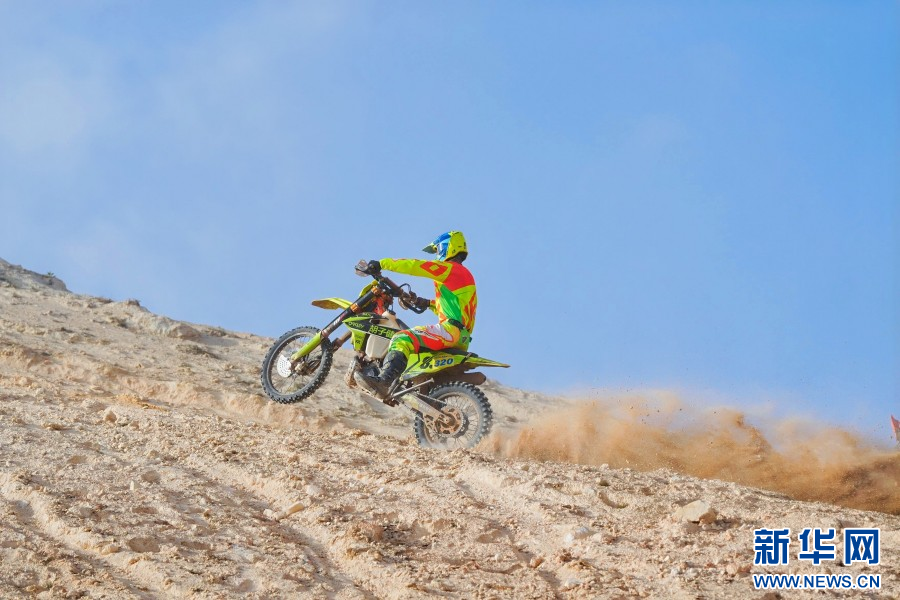 比賽現場,摩托車集結完畢,隨著裁判員一聲令下,選手們沖出起跑線,轟鳴的引擎聲響徹大黑山,爬坡、騰空、急轉……驚險刺激的動作引來觀眾陣陣驚呼。