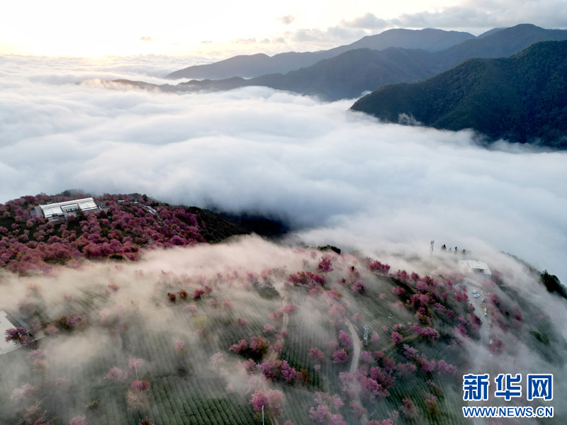 云海翻涌的櫻花谷(1月1日攝)。新華網發(適志宏 攝)