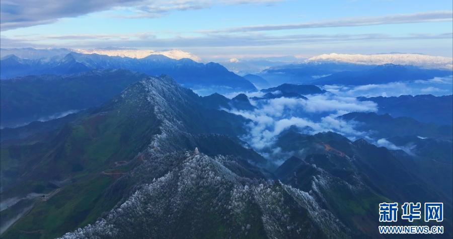 2024年的最后一天,在云南省昭通市大關縣木桿鎮,降雪后的金寶山出現霧凇美景。冰凌垂掛于枝椏,似萬千水晶雕琢而成,高空俯瞰,青山與霧凇交相輝映,如詩如畫。(完)(唐應平 何桂花)