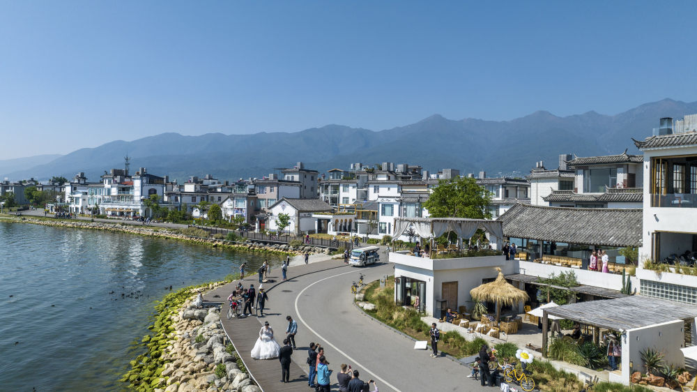 人們在大理市洱海邊的生態廊道游玩 胡超 攝