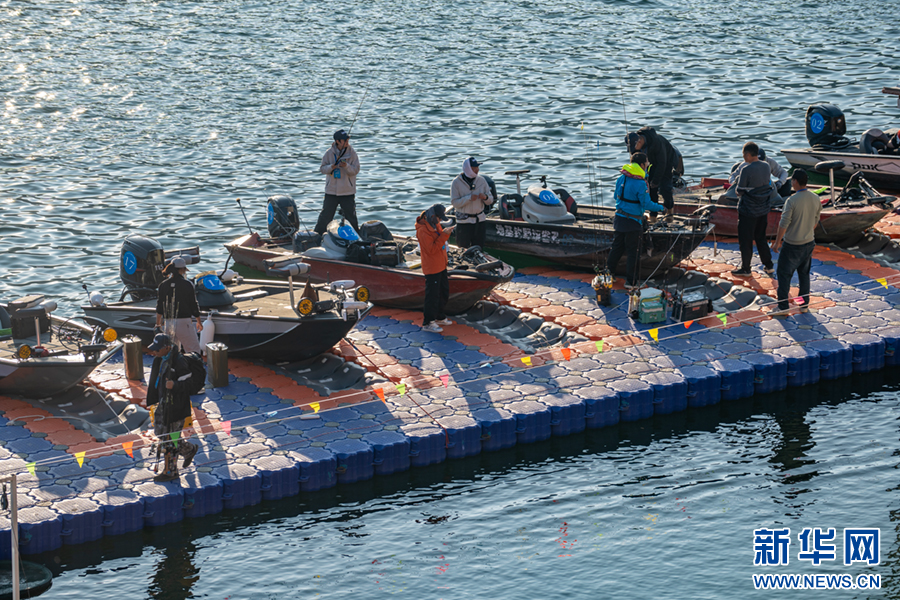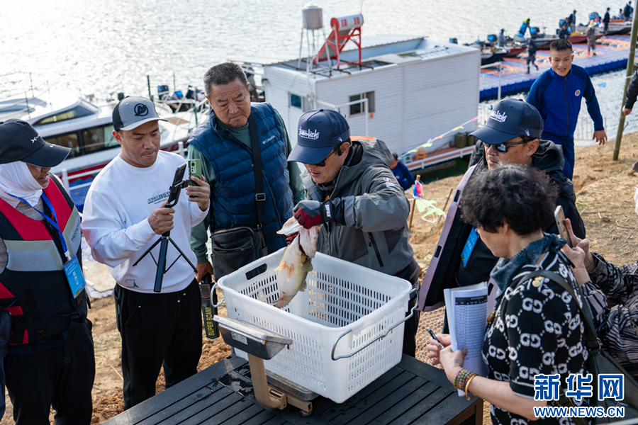 1月2日,裁判員將參賽選手收獲的魚進行分類、稱重。新華網發(羅鑄 攝)