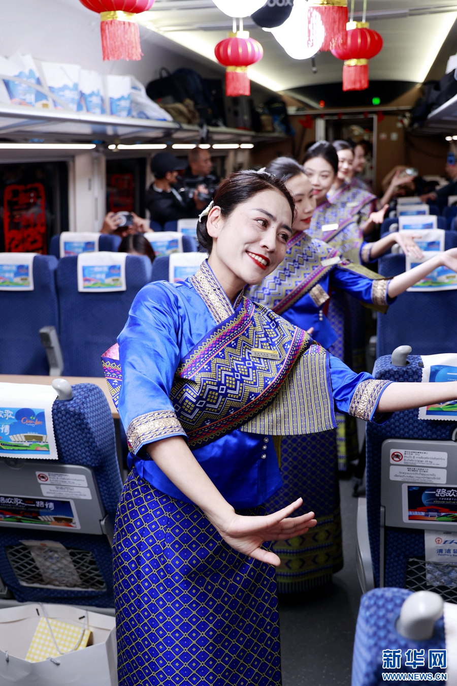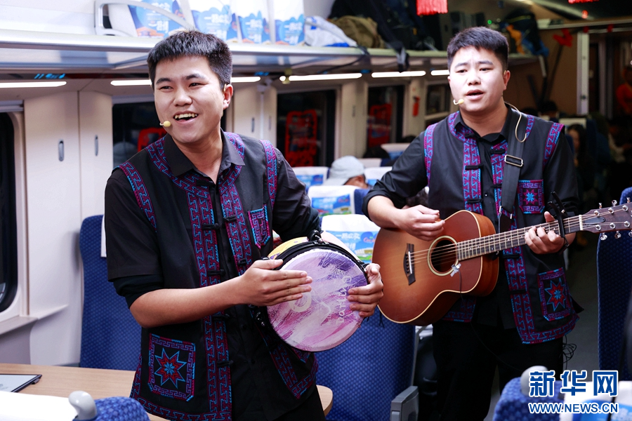 1月14日春運首日,昆明南至萬象的D87次國際旅客列車上,“一路歡歌一路情——中老鐵路春節文化主題活動”精彩上演。車廂內,中老鐵路的見證者、受惠者、體驗者們齊聚一堂,通過歌舞表演、樂器演奏、魔術雜技表演、現場訪談等,生動講述這條幸福路、發展路、友誼路上的動人故事。演出共持續4個多小時,引得乘客們掌聲、笑聲不斷,“一路歡歌一路情”,迎接2025年春運的到來。(念新洪 徐華陵)