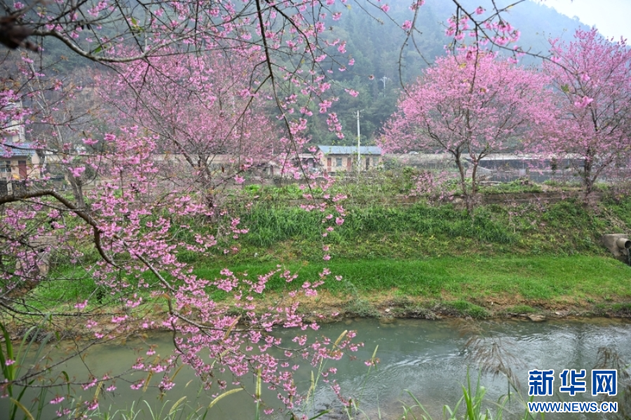 云南省文山壯族苗族自治州西疇縣興街鎮疇陽河沿岸,櫻花盛開(1月7日攝)。新華網發(熊平祥 攝)