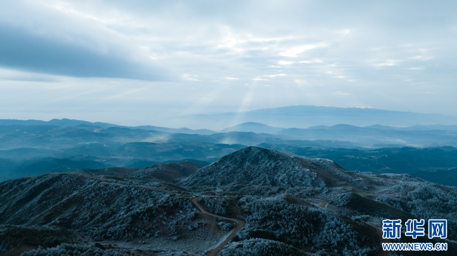 航拍云南梁王山,霧凇景觀繪壯美畫卷(1月13日攝)。