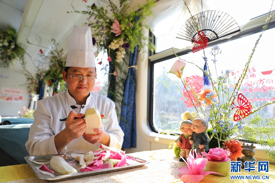 用食材雕刻鮮花造型(1月14日攝)。新華網發(楊紫軒 攝)