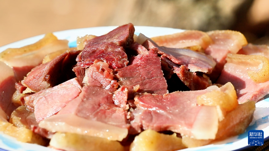切成片準備食用的火腿。新華社發(李新平 攝)