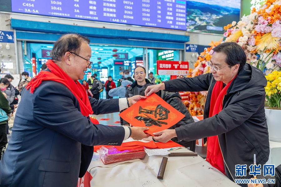 現場送春聯、送福字(1月15日攝)。新華網發(陳暢 攝)