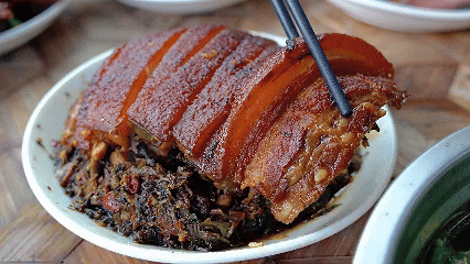 最終一盤熱氣騰騰的黃菜扣肉便可出鍋