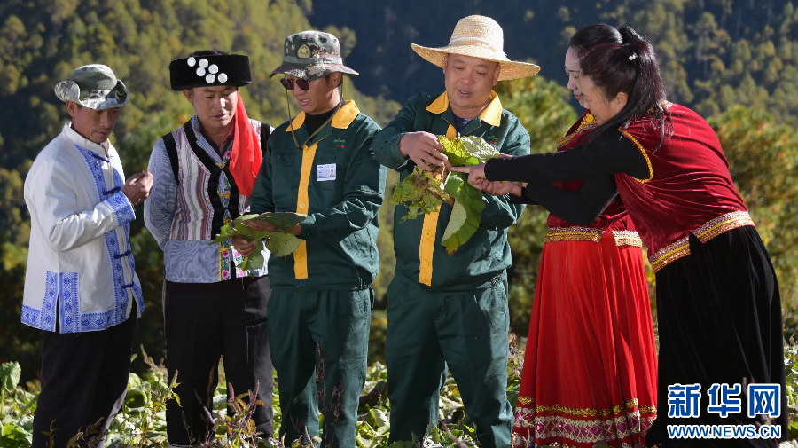 一心堂工作人員在田間地頭進行中藥材種植技術指導(資料圖)。新華網發(供圖)