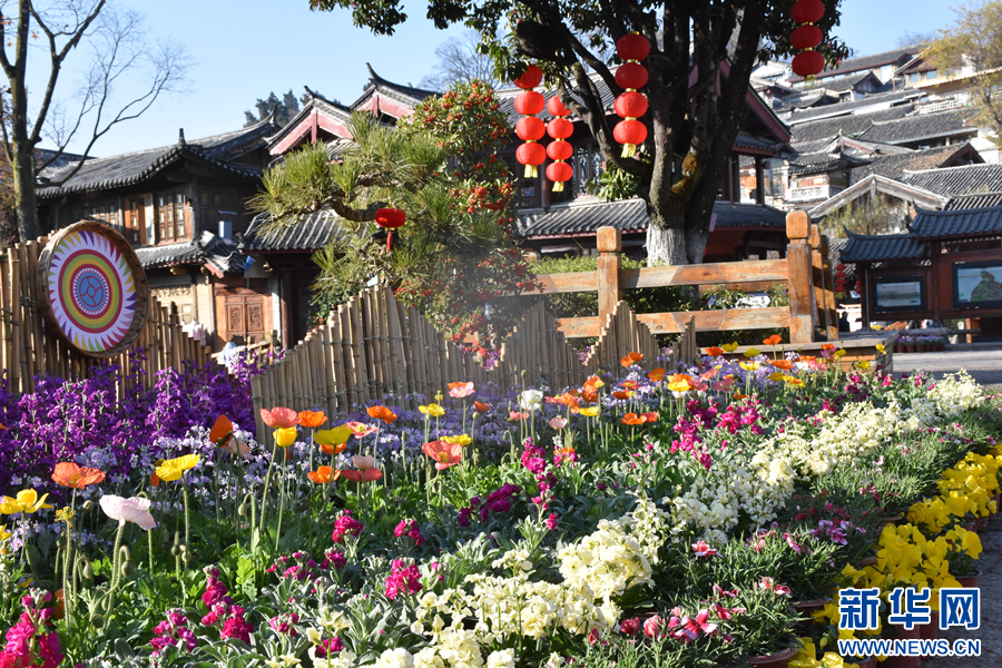 各類鮮花扮靚麗江古城街巷(1月21日攝)。新華網發(和潤仙 攝)