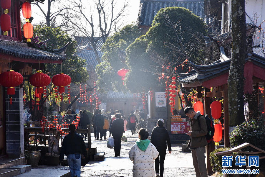 游客在麗江古城游玩(1月21日攝)。新華網發(和潤仙 攝)