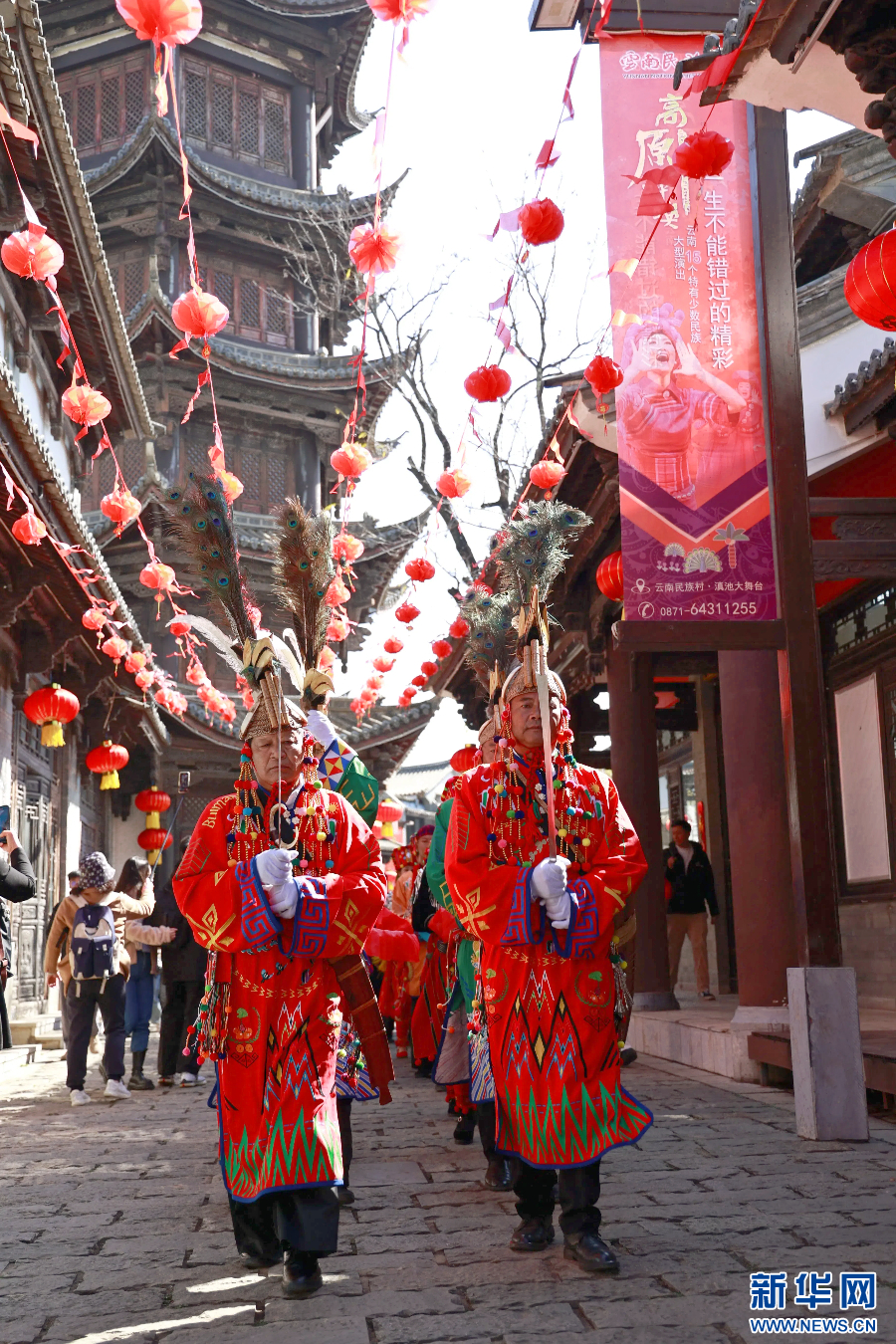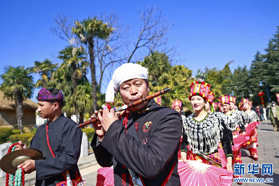 1月23日,云南省昆明市陽光和煦,近百名表演者身著盛裝、載歌載舞,一場融合多民族特色的巡游活動在云南民族村開展。作為“彩云之南 春韻非遺”非遺賀新春系列活動之一,云南歌舞樂展演巡游活動將于1月23日至26日每日兩次在云南民族村開展。