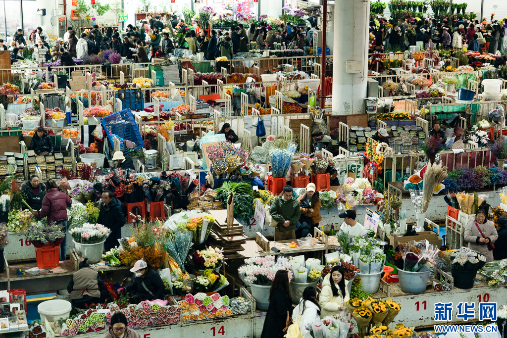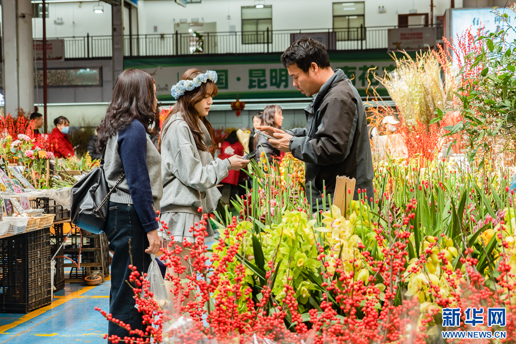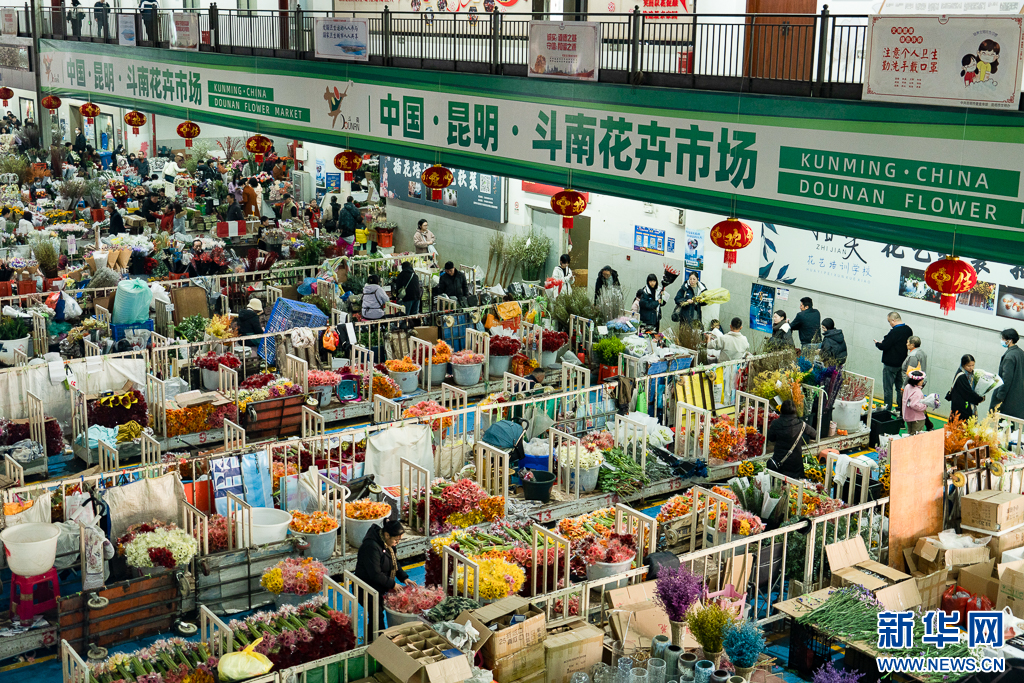 春節臨近,鮮花市場需求量迎來增長。在昆明斗南花卉市場,人頭攢動,熱鬧非凡。各式各樣的鮮花爭奇斗艷,顧客穿梭其間,精心挑選著心儀的花卉,準備為家中增添一抹節日的喜慶。(鄭益)