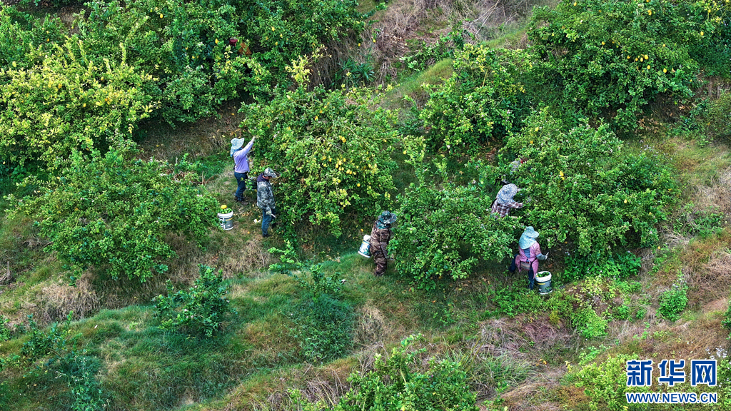 村民采摘香水檸檬(1月21日攝)。新華網發(景洪市融媒體中心供圖)