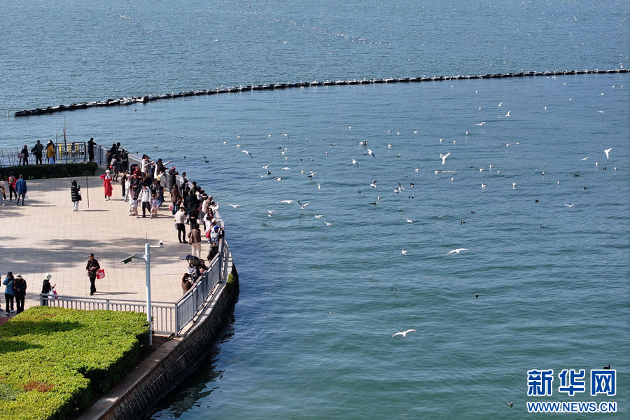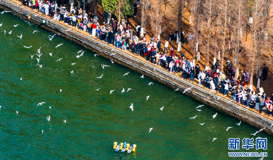 人鷗同樂(2月2日攝)。新華網發(王正鵬 攝)