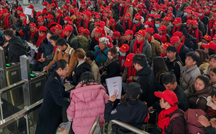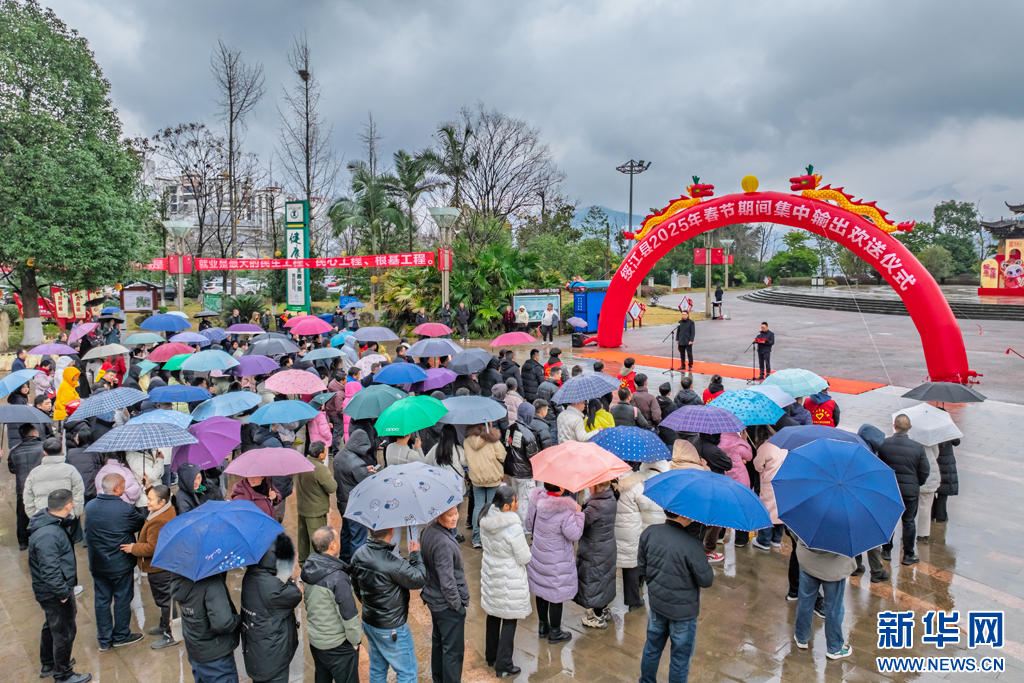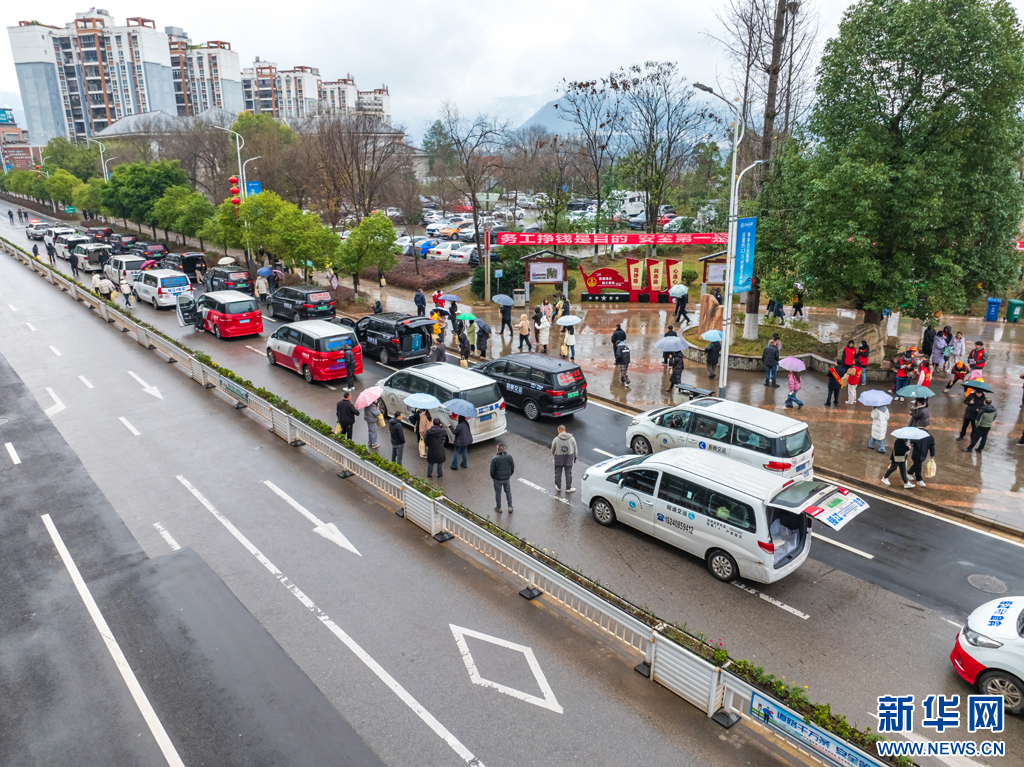 2月3日,云南省昭通市綏江縣以鄉鎮為單元舉行春節期間城鄉勞動力轉移就業集中輸出歡送儀式,著力通過“點對點、一站式”集中輸送方式,免費為500余名外出務工人員提供乘車服務,確保務工人員安全有序返崗。