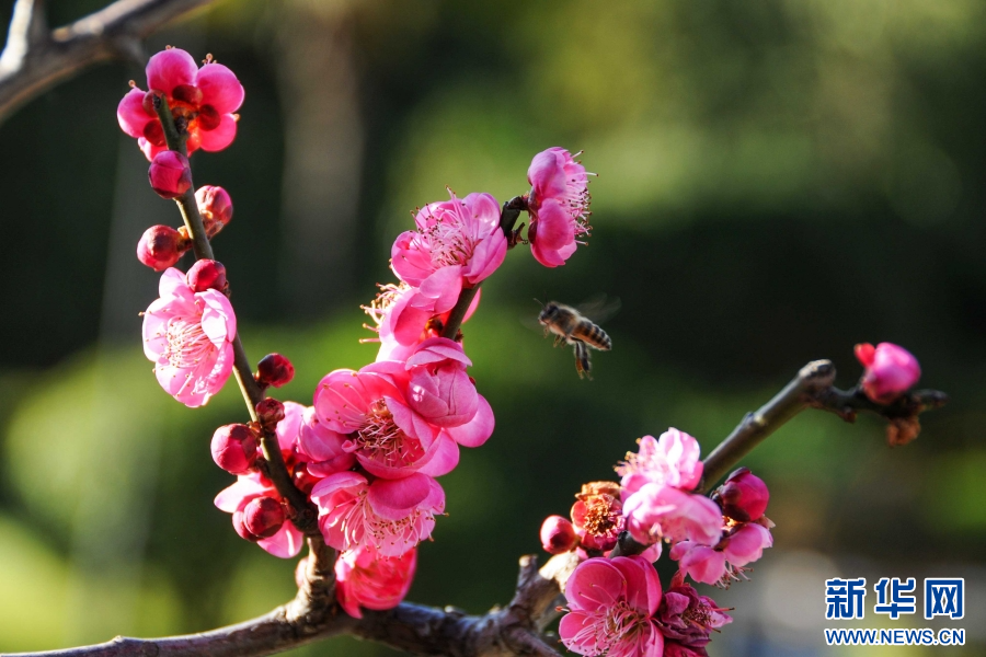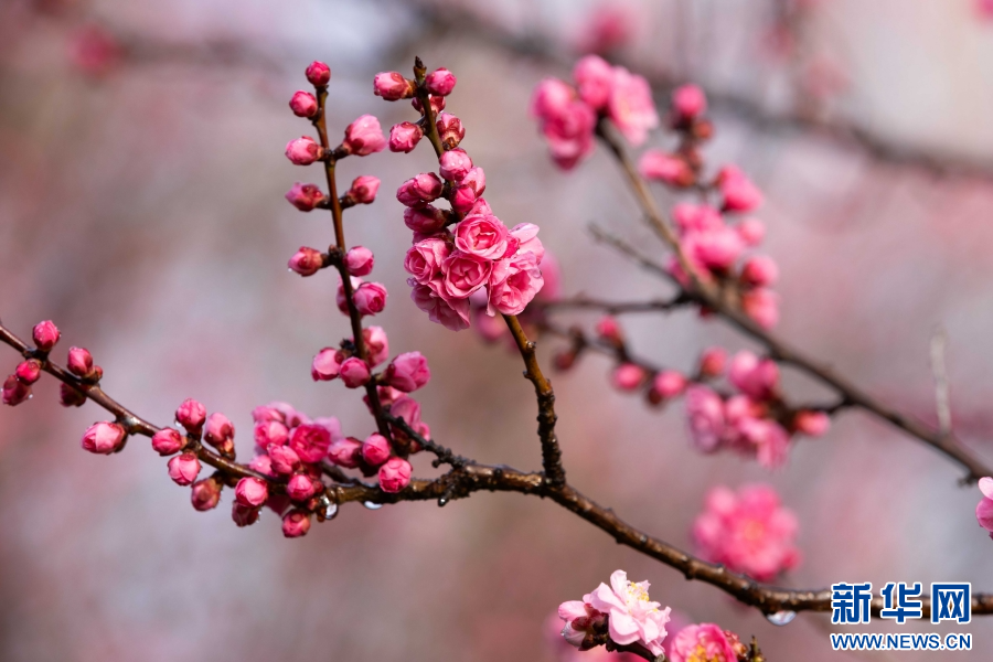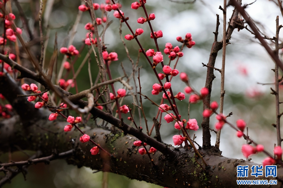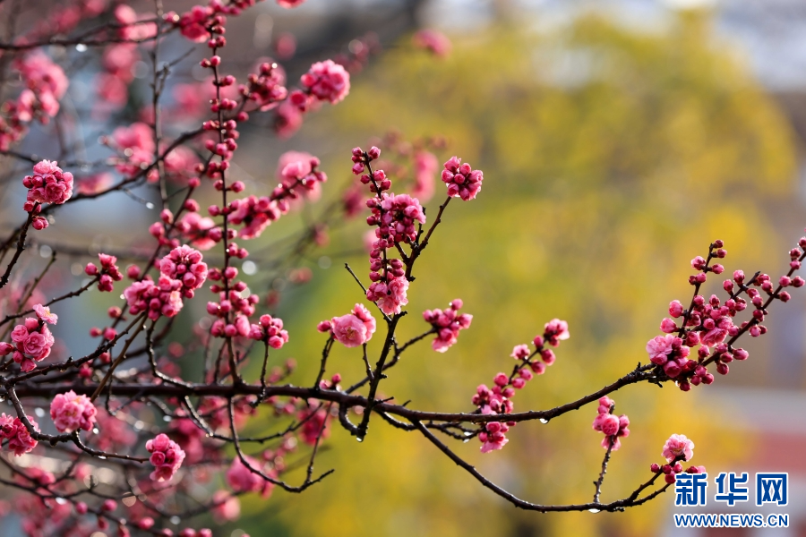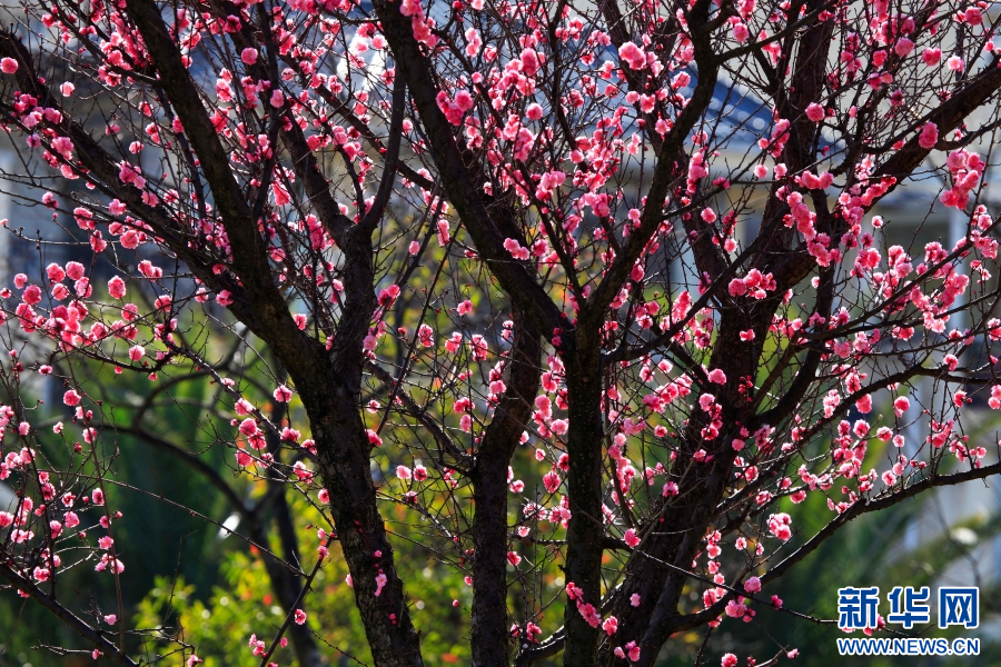 云南省曲靖市沾益區玉林廣場梅花競相綻放(2月3日攝)。新華網發(孫文來 攝)