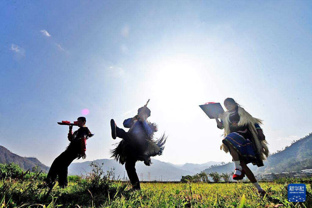 2月6日,演員在南澗縣正月初九龍燈會上表演與彝族跳菜同根同源的彝族舞蹈“三道彎”。新華社記者 陳欣波 攝
