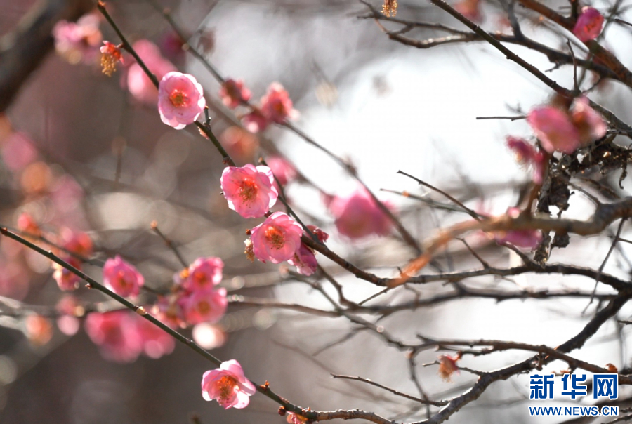 紅梅綻放(2月8日攝)。新華網發(昌寧縣融媒體中心供圖)
