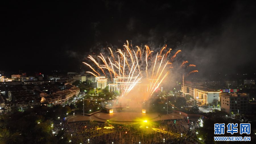 絢爛煙花綻放夜空(2月11日攝)。新華網發(永仁縣融媒體中心供圖)