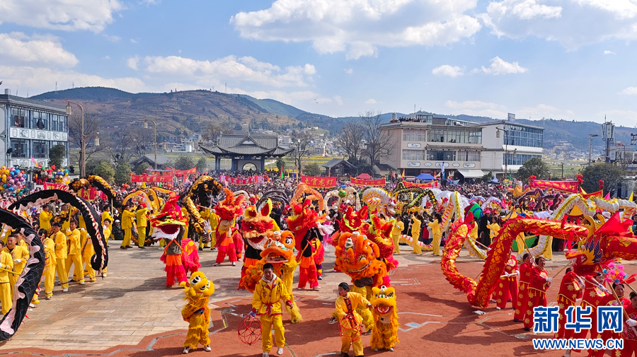 2月12日,云南省彌渡縣迎來了密祉元宵燈會,群眾齊聚一堂,耍龍舞獅鬧花燈。(楊文虹 鞠強 李加勇)