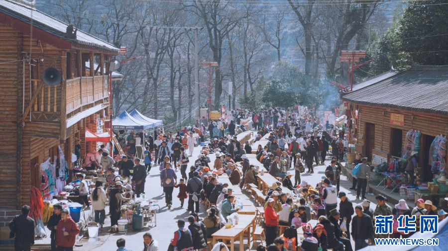熱鬧的直苴村(2月12日攝)。新華網發(永仁縣融媒體中心供圖)