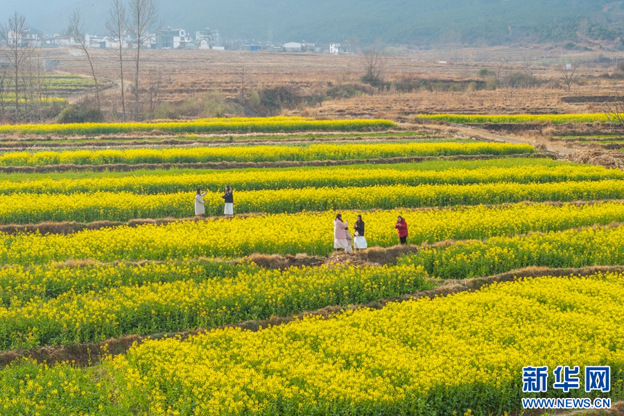洱源縣茈碧湖鎮的油菜花田(攝于2月16日)。新華網發(羅新才 攝)