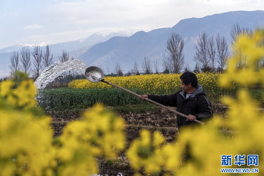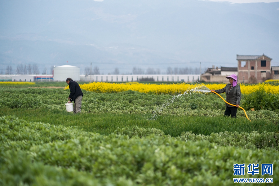 農戶在洱源縣茈碧湖鎮的田間勞作(攝于2月16日)。新華網發(羅新才 攝)