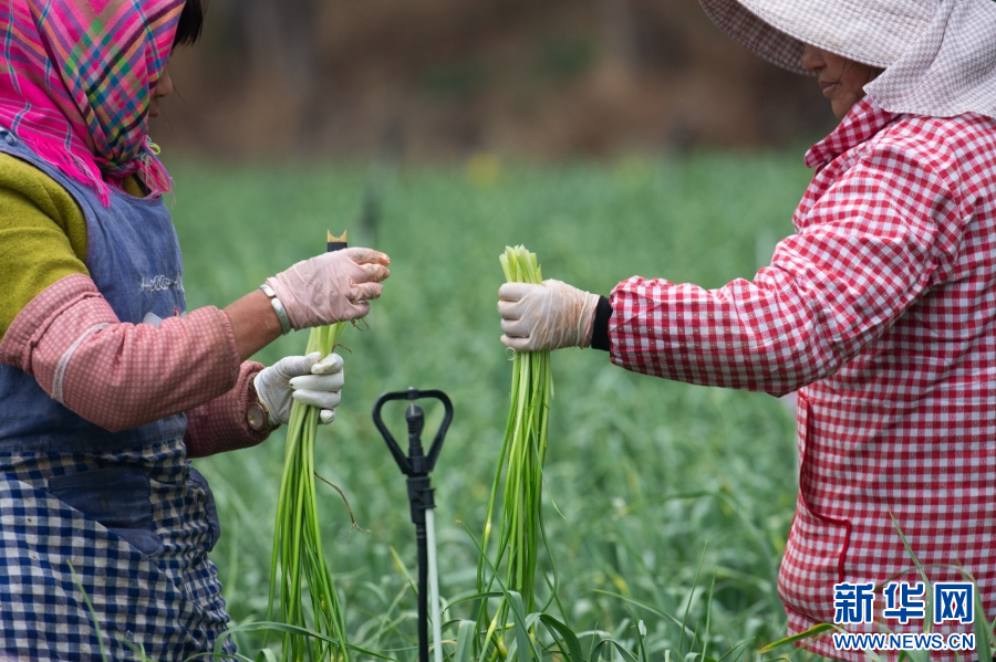 農民采收蒜薹(2月16日攝)。新華網發(楊俊鵬 攝)