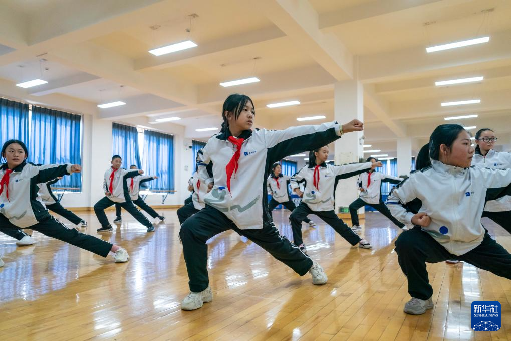 2月28日,昆明市云南大學附屬中學學生在練習武術。新華社記者 陳欣波 攝
