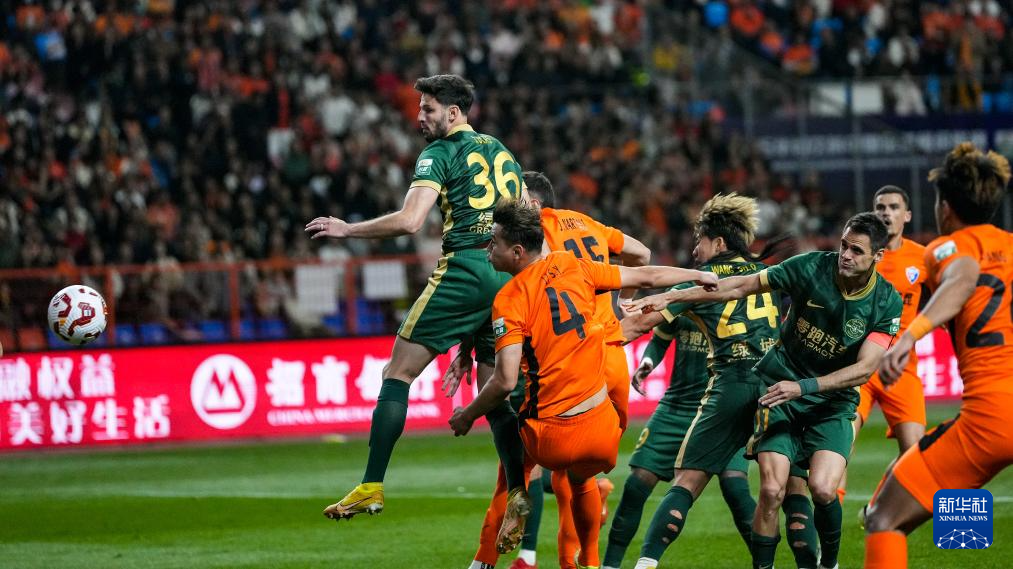 3月1日,云南玉昆隊球員侯永永(右二)在比賽中爭頂。新華社記者 陳欣波 攝