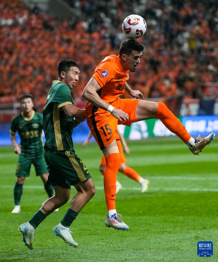 3月1日,云南玉昆隊球員何塞·馬丁內斯(右)在比賽中爭頂。新華社記者 陳欣波 攝