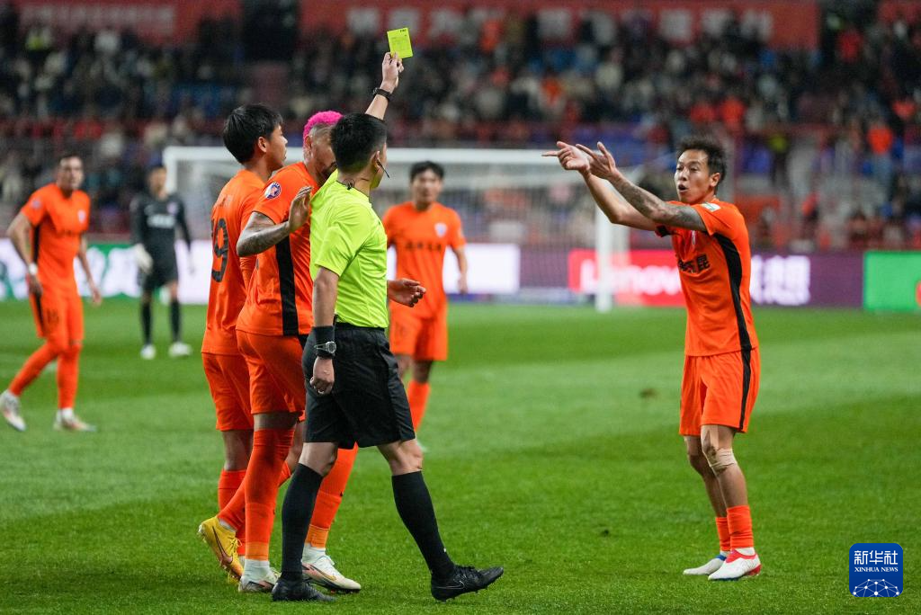 3月1日,云南玉昆隊球員葉楚貴(右一)在比賽中被出示黃牌。新華社記者 陳欣波 攝