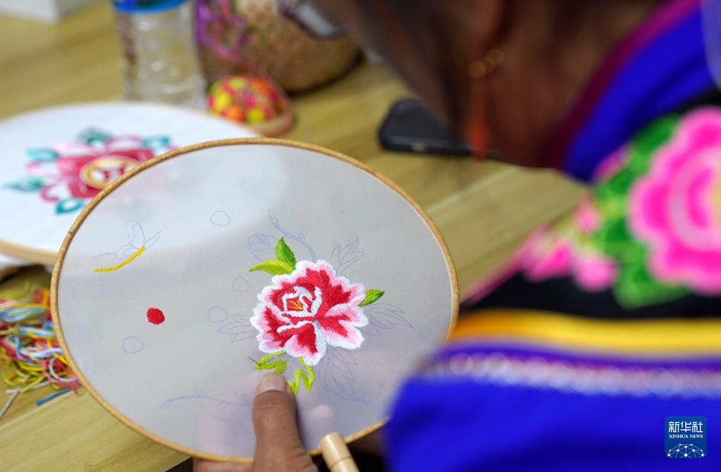 近年來,云南省楚雄彝族自治州大力發展彝繡產業,幫助當地繡娘在家門口就業,彝繡已成為促進群眾增收、推動鄉村振興的重要渠道。新華社發(梁志強攝)