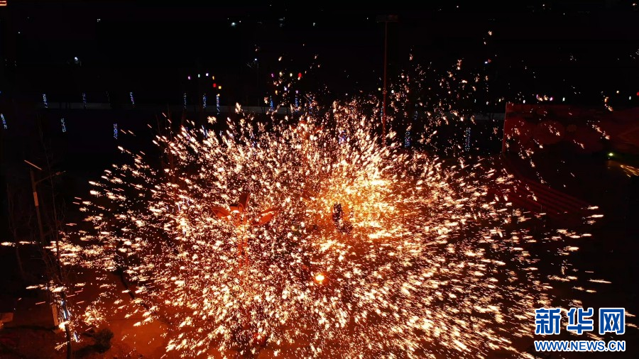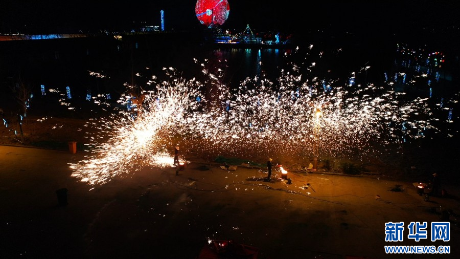 近日,在云南省昭通市魯甸縣,匠人們奮力將燒得滾燙的鐵水打向空中,展示“打鐵花”民俗。鐵花飛濺,為在場的群眾獻上一場極致的視覺盛宴。(陳科邦 楊舒凡)
