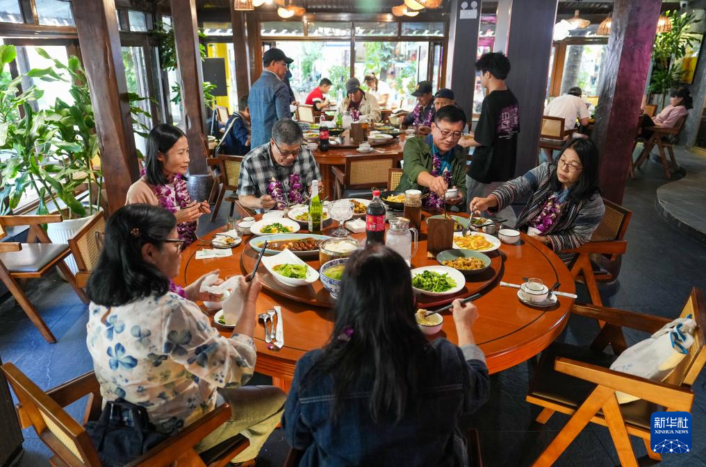 2025年2月19日,游客在西雙版納一餐廳用餐。新華社記者 陳欣波 攝