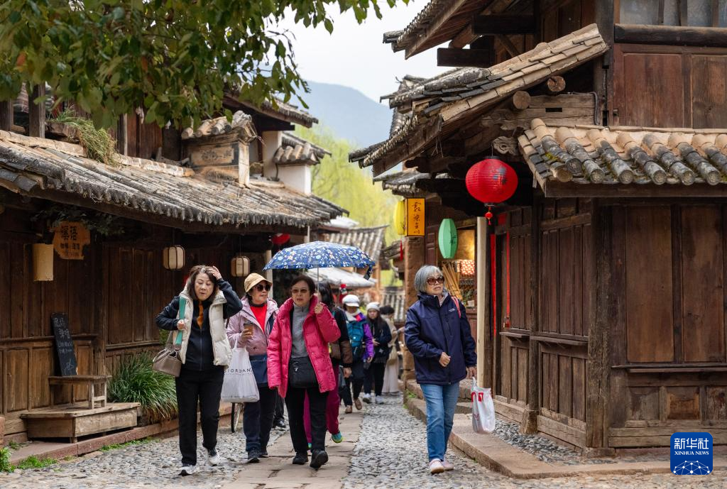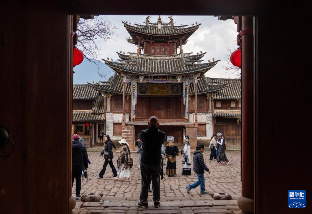 春日,云南省大理白族自治州劍川縣的沙溪古鎮迎來眾多觀光游客。古鎮位于金沙江、瀾滄江、怒江三江并流自然保護區東南部,歷史上曾是滇藏茶馬古道的重要驛站。古鎮保存著傳統村落風貌,包含大量明清時期的民居院落、古戲臺等歷史遺存。