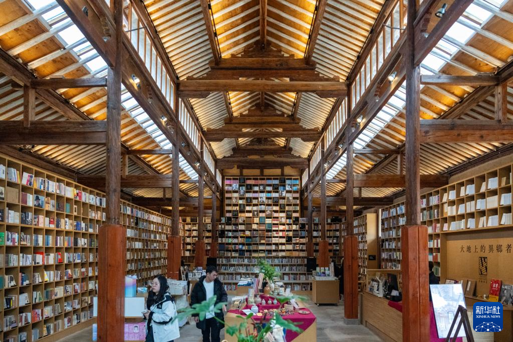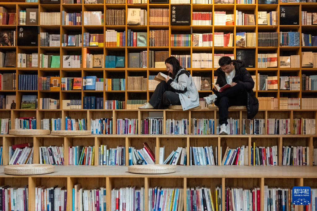 3月17日,游客在沙溪古鎮先鋒沙溪白族書局內看書。新華社記者 陳欣波 攝