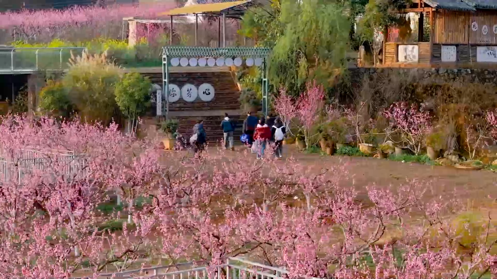 在茈碧湖畔的“桃花源”基地,上萬株桃花迎風盛放,嬌艷動人,花香四溢,吸引了不少游客前來拍照打卡。