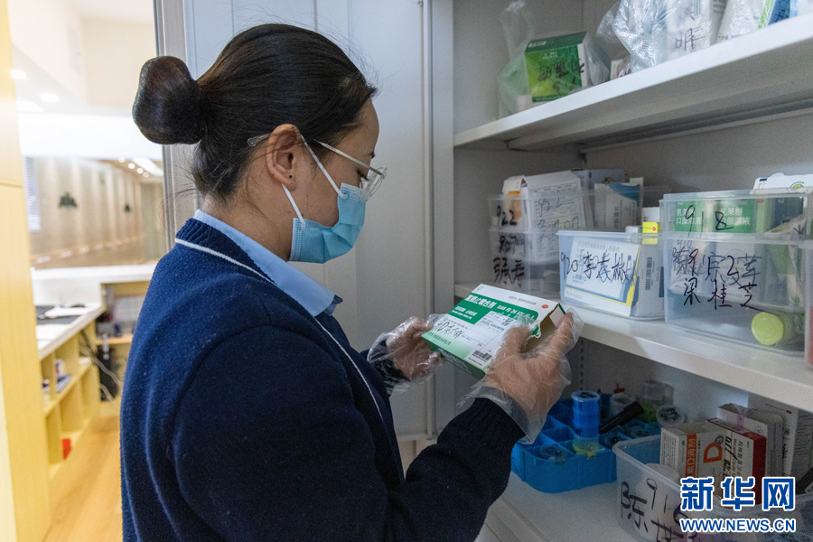 李麗萍檢查整理老人們的日常用藥(318日攝)。新華網發(李浩 攝)