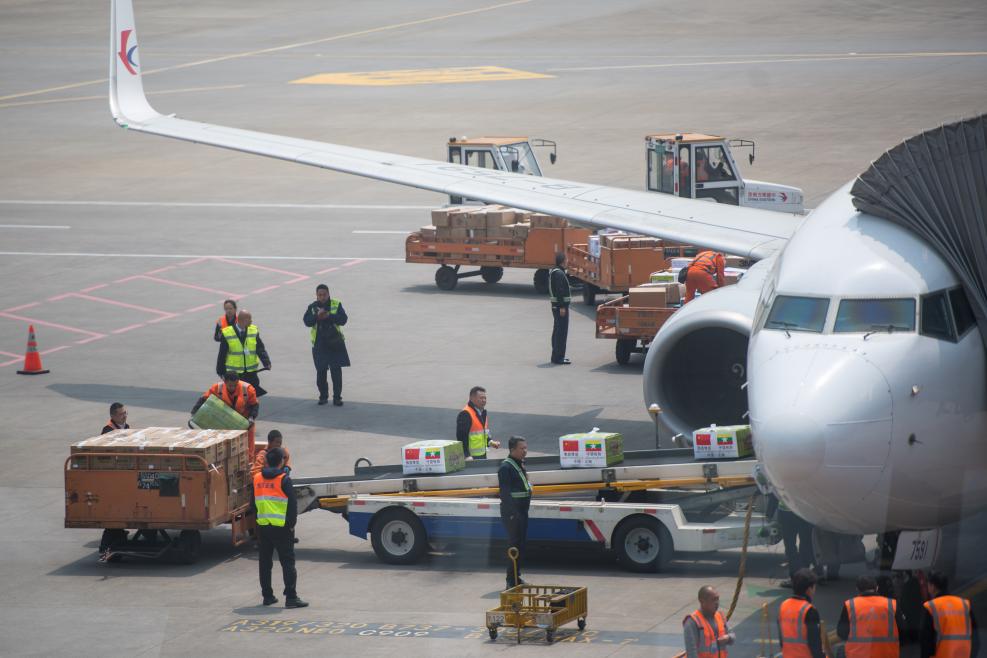 3月30日下午,云南緊急調運衣服、藥品、方便面、帳篷等生活及救援物資共約7.3噸,包機從云南昆明飛往緬甸仰光,全力支持緬甸地震救災工作。